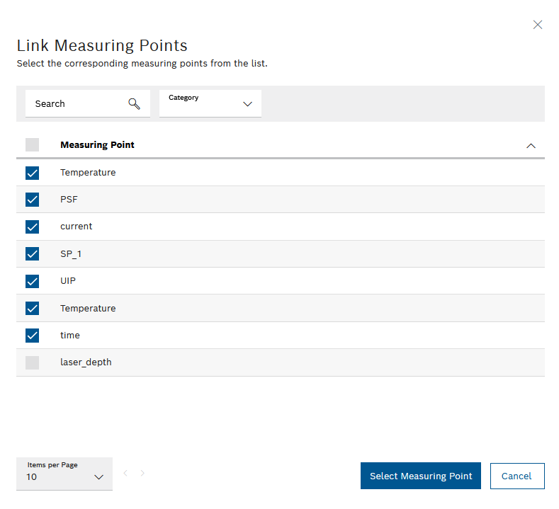 Deactivate the checkbox of the measuring points which are to be unlinked and click on Select measuring point.